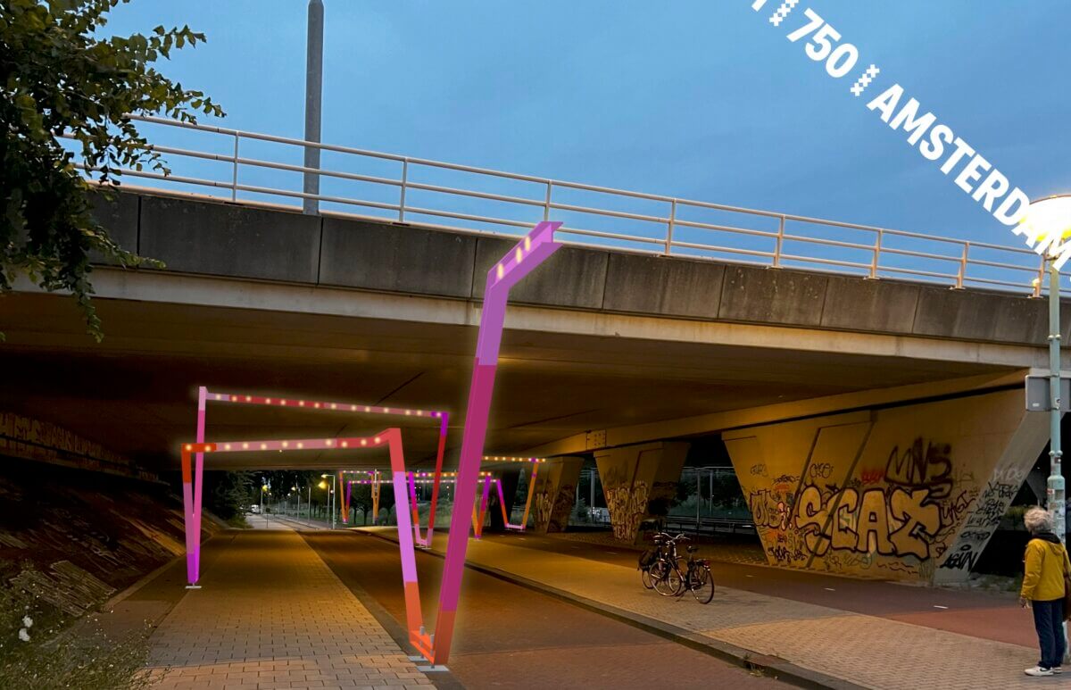 Om het 750ste jubileumjaar van Amsterdam extra in het licht te zetten, schenkt de gemeente Amsterdam vijf unieke lichtkunstwerken aan de stad. Deze kunstwerken, verspreid over verschillende stadsdelen, brengen niet alleen een feestelijke sfeer, maar versterken ook de levendigheid en veiligheid van hun omgeving. Het zijn plekken waar kunst, buurtbewoners en geschiedenis samenkomen.